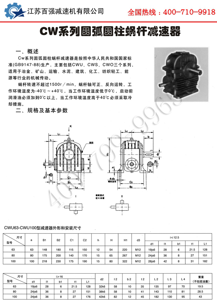 當前位置:首頁 > 商品中心 > 蝸輪蝸桿減速機 > CW系列圓弧圓柱蝸桿減速機
