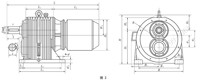 (3)YZL型一YZG型電機(jī)與二級圓柱齒輪減速器組成的輥道電機(jī)減速器。