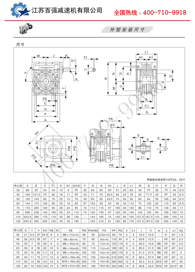 RV系列鋁合金蝸輪蝸桿減速機-安裝方式