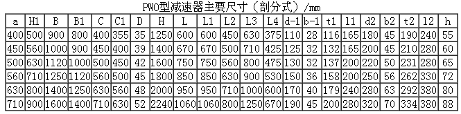 剖分式PWO400、PWO450、PWO500、PWO560、PWO630、PWO710、型平面二次包絡環(huán)面蝸桿減速機主要尺寸