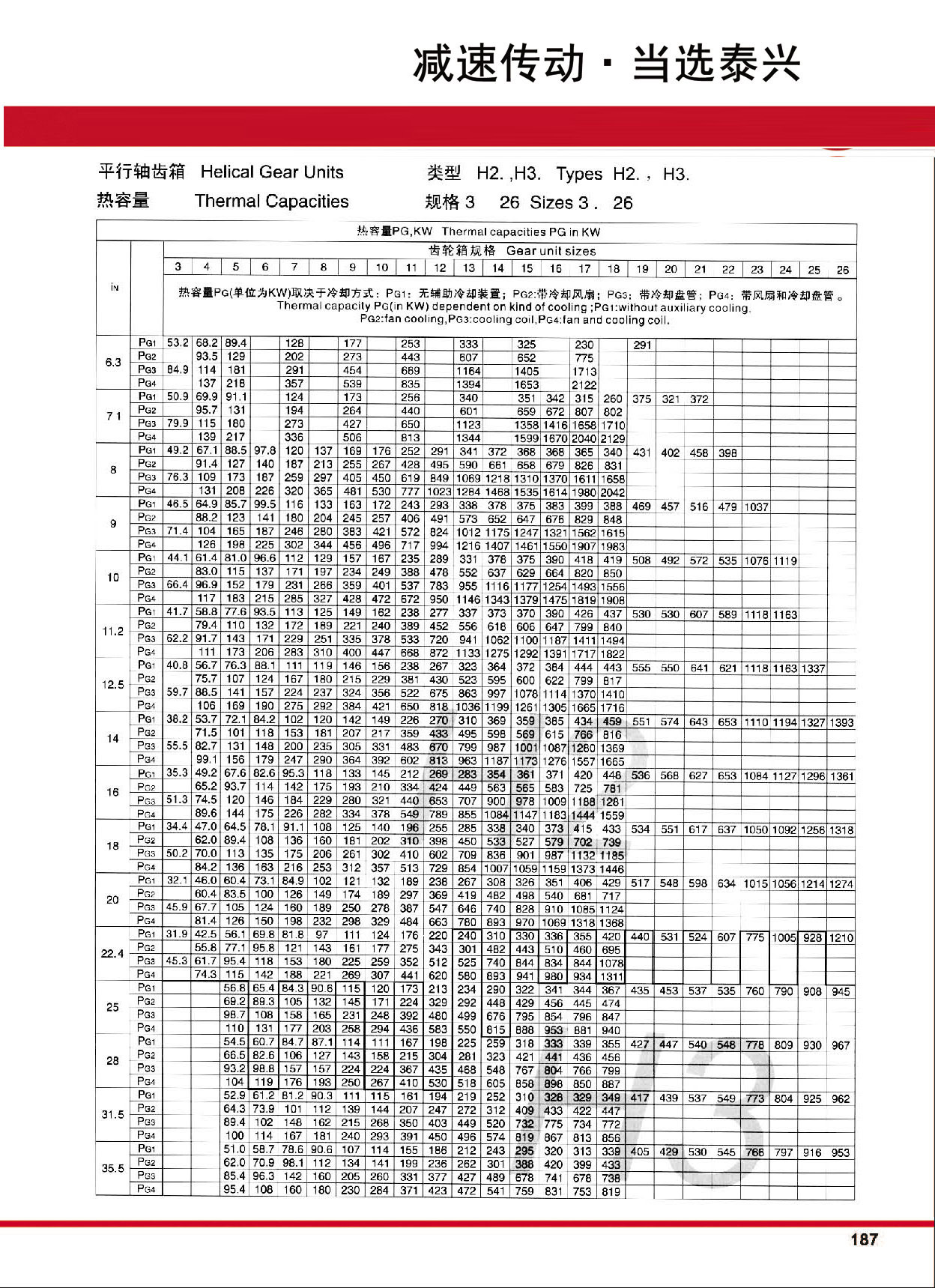 7、 H、B系列產(chǎn)品有3~26型規(guī)格,減速傳動(dòng)級數(shù)有1~4級,速比1.25~450。