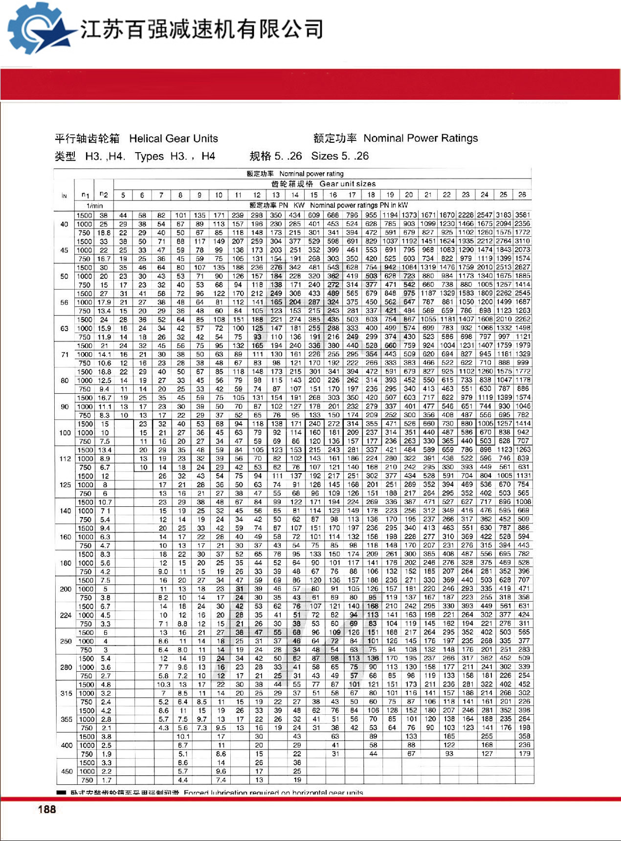 7、 H、B系列產(chǎn)品有3~26型規(guī)格,減速傳動級數(shù)有1~4級,速比1.25~450。